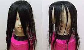 例えば30㎝の髪であれば、均等に折り返しした場合に15㎝の長さのウィッグとなります。また20㎝&10㎝で折り返し植えした場合には、最長が20㎝程度の長さになります。